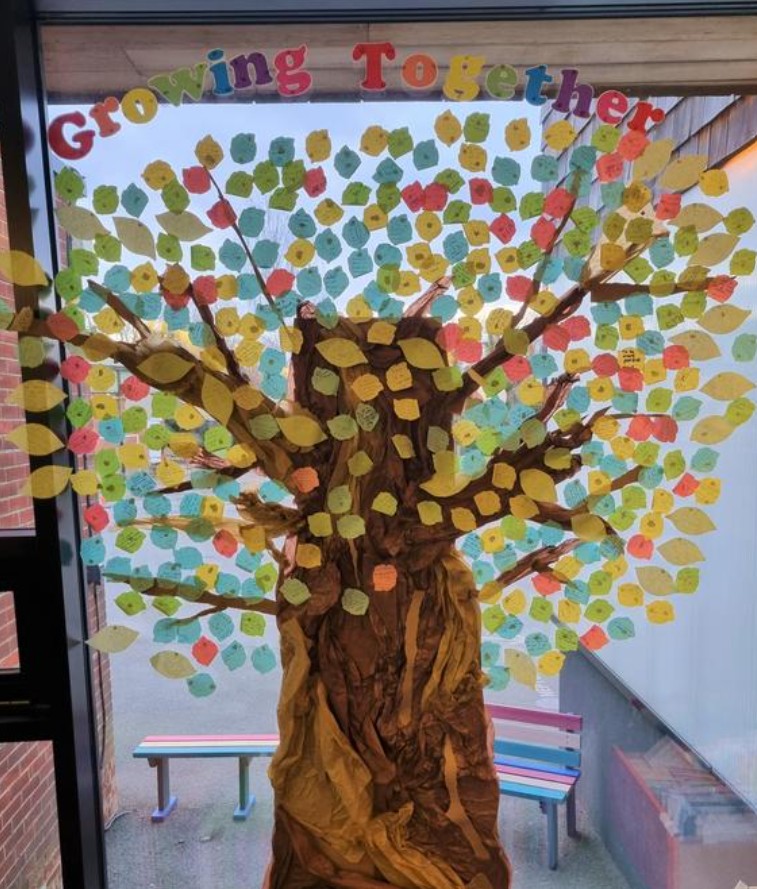 As part of our RSHE curriculum, children are introduced to the concept of healthy lifestyles (physical and mental) from an early age. The skills taught in this aspect of the curriculum are intertwined in other aspects of the broader curriculum and school life. Each year we hold a 'children's mental health awareness week' where, through assemblies and class activities, we focus on an specific aspect of keeping mentally well. This year the theme was 'Growing together' and all staff and children wrote a promise on leaf that outlined one way that they can support others to grow emotionally or they wrote an action that they were going to take to support their own emotional growth.